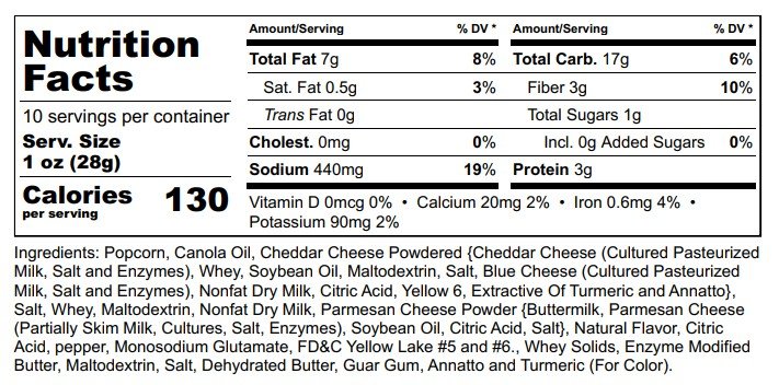 This cheese popcorn recipe uses Real Cheddar Cheese and butter for a savory snack the whole family will love. 1 gallon. Trans fat free. 100% whole grain. GMO free corn. 100% gluten free. No high fructose corn syrup.